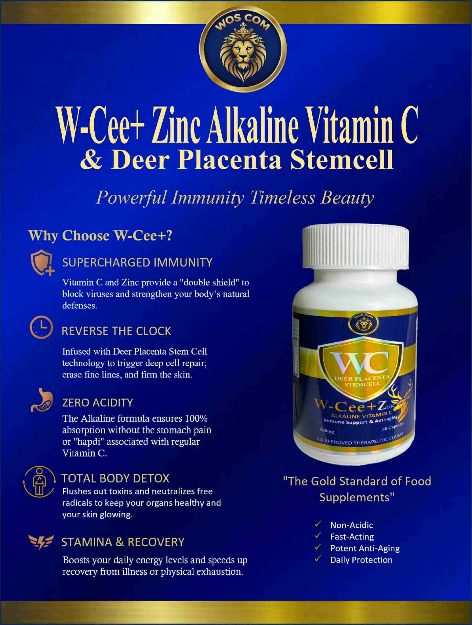 W-CEE Zinc Alkaline Vitamin C with Deer Placenta Stemcell